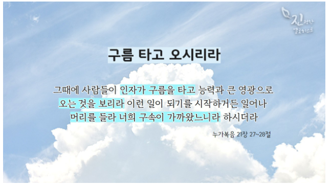 그래서 하나님께서 실제 구름을 타고 오시는 모습을 상상을 하거나, 언제 오시나 하늘을 바라보고 있는 사람도 종종 있는 걸로 알고 있습니다.